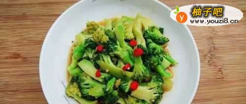 5热锅倒油,放入蒜头爆香后,倒入焯好的西兰痕召花,翻炒两屈珠下,随即撒入食盐和调好的料汁,翻炒均匀后便可出锅装盘。
