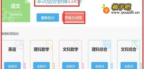 66、提交后,出现该科目的估分,所有科目都估分后,单击查看总成绩,就会出现我的总分,小编只语文进行了估分。