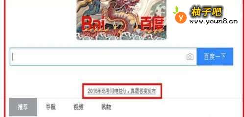 1、打开百度网页,在百度输入栏的下方有2016年高考闪电估分,真题答案发布,单击一下。