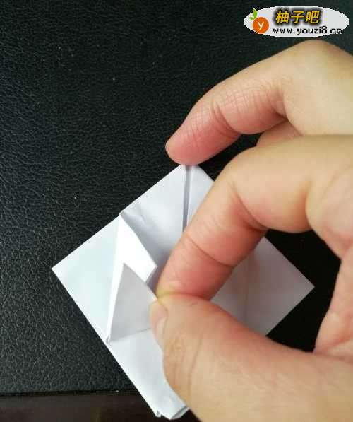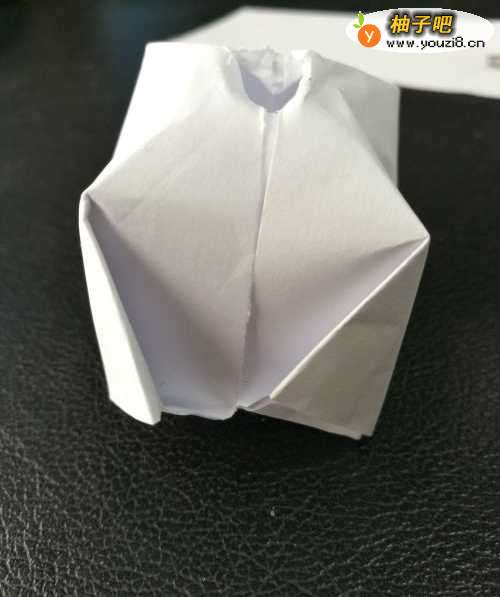 7然后把多余的下面往上对折穿插到上面的部分。全部对折后可以看到下面的结果。