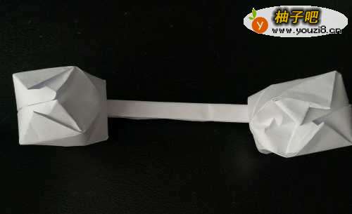 8这时,电话的一部分就做好了。我们看到这个折叠好的东西上面有一个孔是空的,用力对着嘴巴吹一下,让其鼓起来。