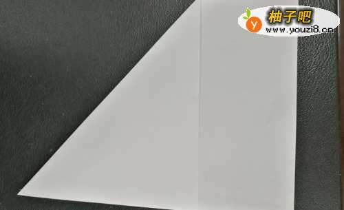 3我们先拿一半沿着竖着的方向对折出一个三角形,并把多余的部分剪掉。