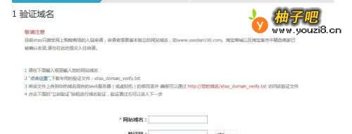 3进行域名认证:下载专用的验证文件:etao_domain_verify.txt将该文件上传到你的域名指向的web服务器(或虚拟机)的根目录并 确保可以通过 http://您的域名/etao_domain_verify.txt 访问该验证文件