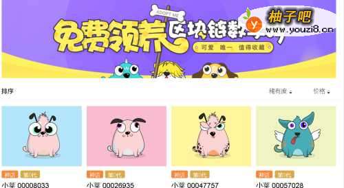 2页面上提示宠物狗的特点是【可爱、唯一】,点击【免费领养】。