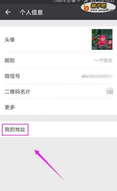 4就来到了我们微信个人主页,我们点击下“我的地址”,如图。