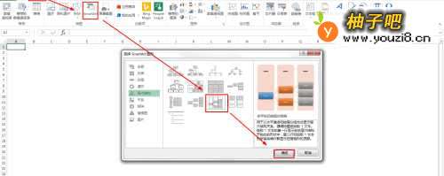 设置无网格线的显示方式——插入——SmartArt——水平标记的层次结构——确定。