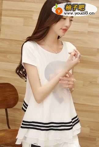3运动与时尚从来不冲突,毕竟休闲也是很多人孜孜以求的惬意。太花哨的色彩不适合表达这份追求,不如白色纯粹干净,一点条纹点缀就让印花凸显,A摆上衣想要的效果就是宽松自在。