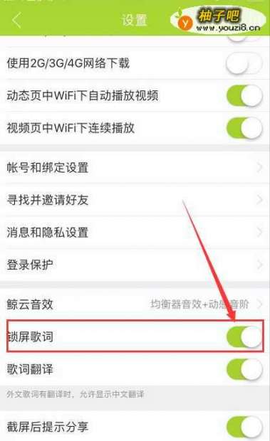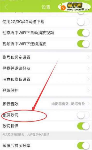 4点击进入到设置页面,往下翻看,就可以看到 锁屏歌词,如下图