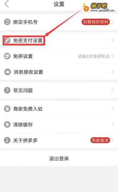 4进入设置后,找到“免密支付设置”,点击进入