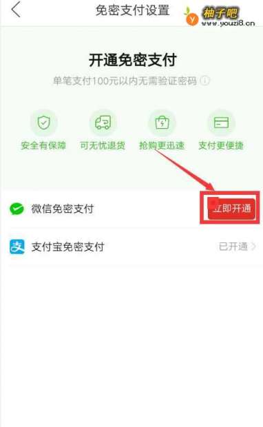 5然后我们找到微信免密支付,点击右侧的“立即开通”