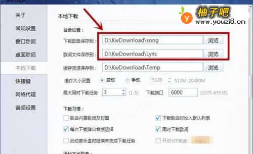 4在新页面中选择歌曲和歌词的保存路径(单击相应的输入框后的“浏览”即可选择歌曲和歌词的保存地点)。