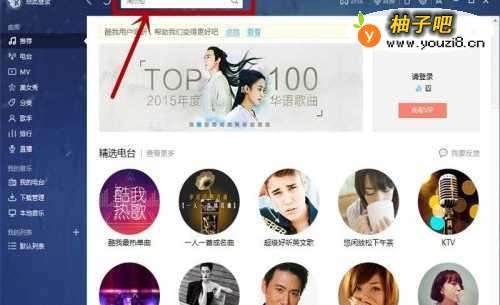 6在页面上方的输入框里搜索歌手或直接搜索歌曲。