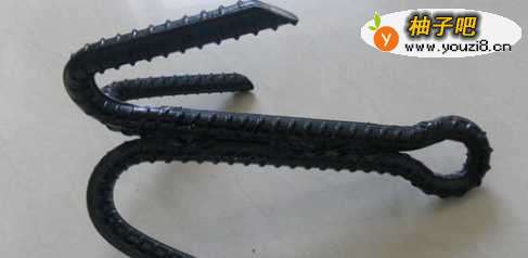 4把钢筋中间对折一下折成两个钩,然后在加上一个钩焊接在一起。