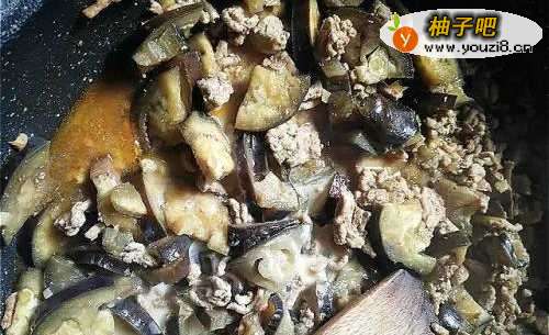 4茄子切小块,加入炖煮