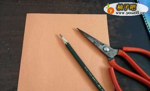 先准备好剪纸需要的纸,剪刀,笔。先把彩纸的中线对折。