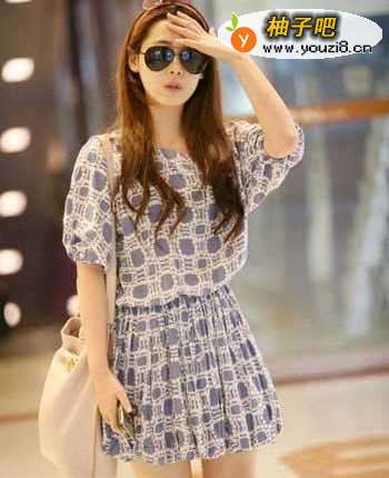 3素雅的几何图案的雪纺连衣裙,简约而有型的娃娃领,充满了迷人的俏皮感觉,松紧的腰身线条,绝好的修身出迷人的腰部线条,轻柔的质地,塑造出迷人的飘逸感觉,淡淡的色彩,瞬间彰显出迷人的淑女气息。