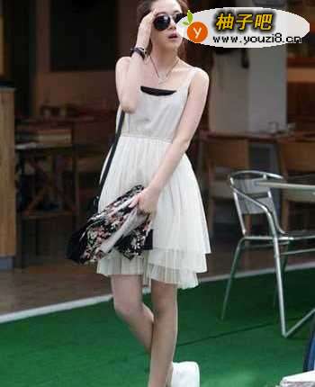 2纯色的吊带连衣裙,大大的圆领,显露出胸部的大面积皮质,利用黑色的小吊带作为修身,既可以塑造出可爱的性感层次,又帮你解决走光的味道,修身的剪裁非常的有型,蓬松的裙摆,具有迷人的贵族气息。