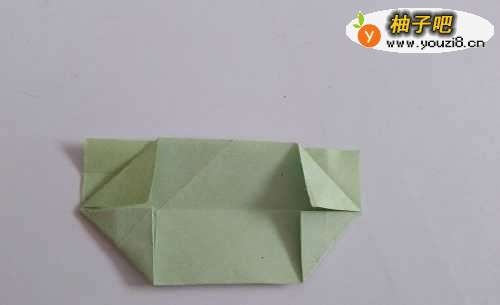 2把面前的四个角向内折,上边有两层,后边的不折,如图。