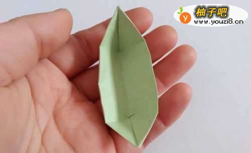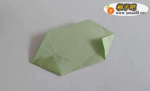 4翻到背面后,我们把刚才没折的角向内折,再把下边的边向上折,如图二。