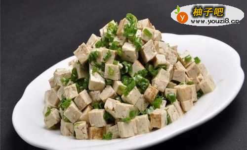选择小葱或者香葱,洗干净切小段,豆腐用开水焯一下,去除豆腥味,然后凉水清洗干净切成小段,放入调料拌匀即可。