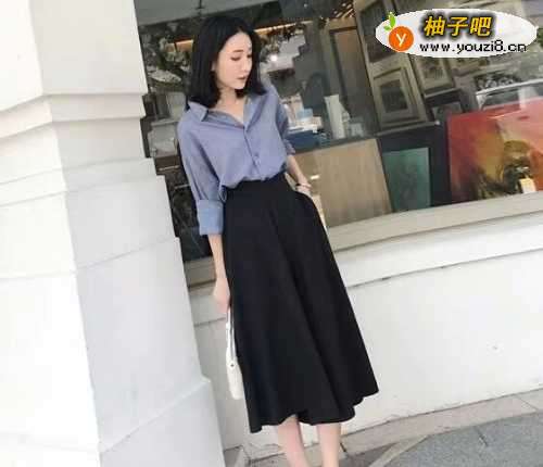 搭配三:黑色半裙+白色衬衫白色衬衫是很百搭的服饰,穿出来很洋气,搭配一条黑色半裙,经典、大方。