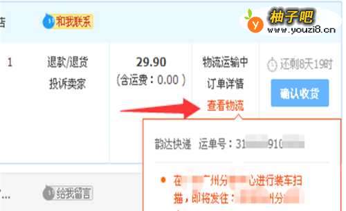 6我们假如还不能确定自己拍下的宝贝是否真的付款成功,也可看你所购买的宝贝的右边,物流运输中下方查看物流信息,证明我们已付款成功了。如下图所示,