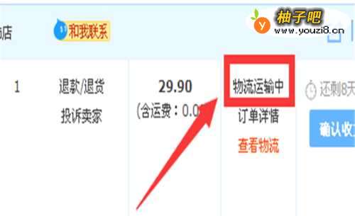 5如果你还不能确定自己拍下的宝贝是否付款成功,也可看你所购买的宝贝的右边,如下图所示,都有物流运输中的字样了,证明已成功付款了。