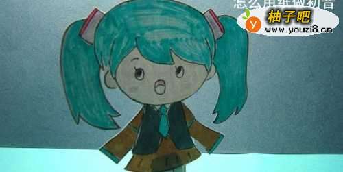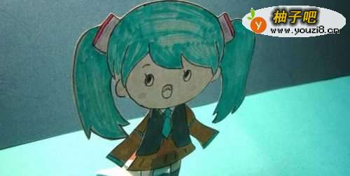 然后,从左边视角来看用纸制作好的初音,看看初音唱歌形象的不同视觉效果,如下图所示。