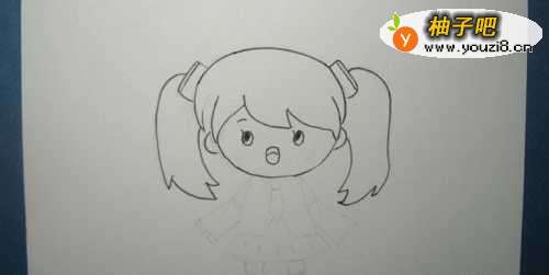 2用黑色彩色笔在纸上画出初音的头发和五官的图形部分。