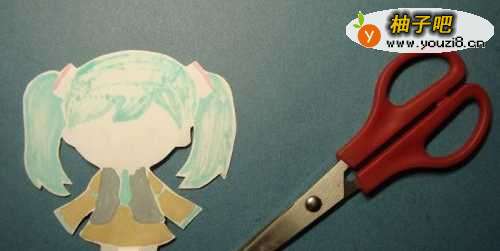 然后, 用剪刀把初音的图形剪出来,但脚的图形部分不剪,如下图所示。
