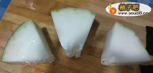 将冬瓜洗净,去掉瓜瓤,然后去掉厚皮。