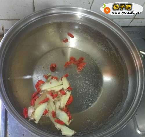 5锅内放入清水,然后加入枸杞、姜片大火煮开。