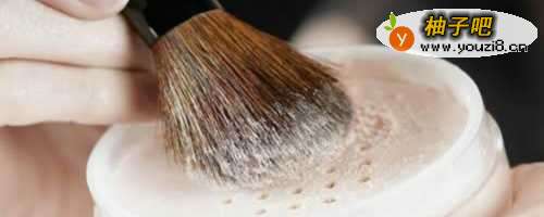 6用刷子沾点散粉,在脸上轻轻撒上一圈,使得脸上没有上妆的油腻感,更加清爽。