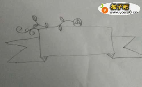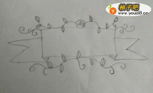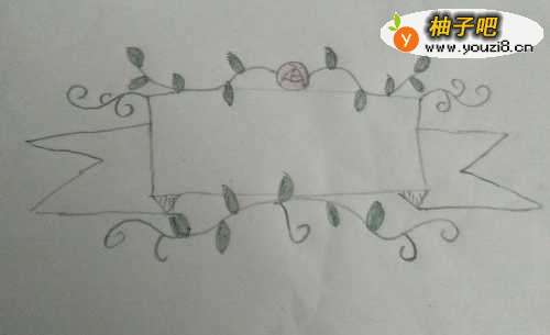 4然后我们在画由玫瑰花生成的藤蔓线条曲直圆滑,叶子大小适中左右尽量对称。