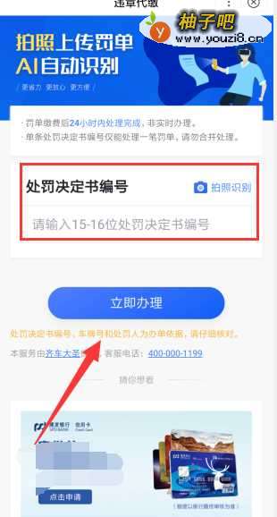6这时,就来到违章代缴的页面,在处罚决定书编号的下面填写你想要的编号,点击立即处理,接着按照步骤一步一步进行操作,进行违章缴费就行了,如图所示