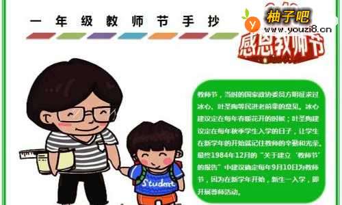 2在【一年级教师节手抄】标题的右侧处,画出画面丰富内容,如下图所示。