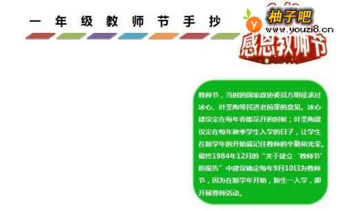 5最后,在【一年级教师节手抄】标题的下方左侧处,画出一年级教师节相关内容及外框线,如下图所示。