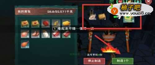 4第四步,把准备好的材料放到烹饪锅中,再点击制造1个,如下图