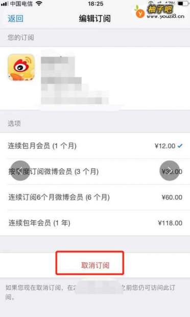 6点击后进入【编辑订阅】主页,点击主页下最后一栏【取消订阅】,如图所示!点击后系统会弹出一个是否确认取消的对话框让你选择,点击【确认】,续费会员就取消成功了!