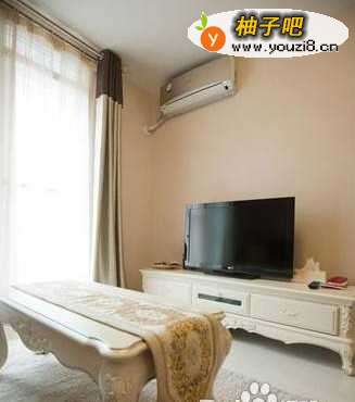9带有复古风格的茶几和电视柜,线条优美,给原本简单的布置增添了别样的风情。茶几下铺就的地毯,增添了客厅的舒适度。