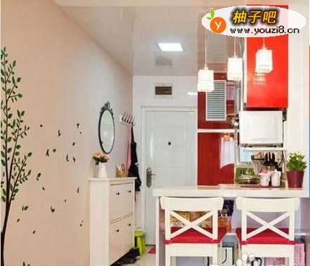 5即使是小户型也能增加艺术气质,在过道的墙面上手绘上一棵绿树,提升了整个小空间的气质,给房间带来了大自然的气息。