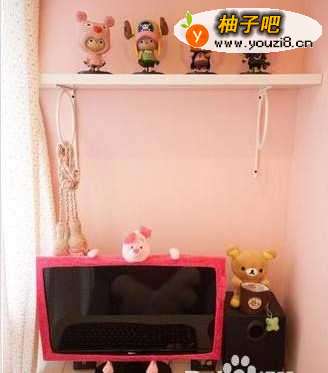 13妻子的桌位上的红色套边小猪和搁板上蒙奇奇,给小空间增加了一抹童趣。