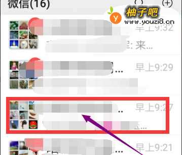 2在微信主界面找到你要发布公告的微信群。如果有人在群里说话会在主页面看到这个群,点击打开这个群。