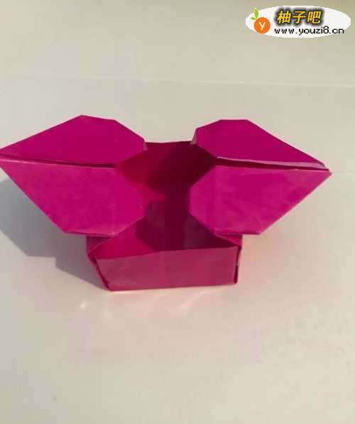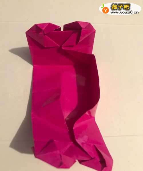 9第九步 折好一个角之后 其它三个角同样折叠 折放差不多的时候再把向下向里翻折 折倒捏平 然后整理一下 一个漂亮的爱心盒子就折叠完成了