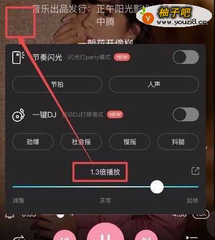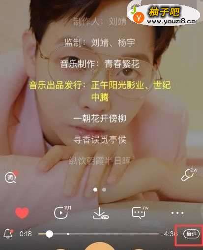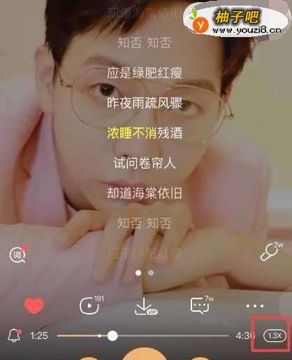 3在播放音乐歌词节目能看到底部播放进度中,右侧有个“倍速”,点击一下。