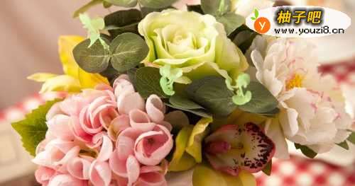 3常见的花色组合。A.单色组合--选用一种花色构图,可用同一明度的单色相配,也可用不同明度(浓、淡)的单色相配。如现代西方婚礼用花喜用白色新娘捧花和白色婚纱,极富纯洁高雅之趣。B.类似色组合--类似色组合。类似色组合,就是色环上相邻色彩的组合(即色环上任何90°夹角内三角组合)。由于它们在色相、相度、纯度上都比较接近,互有过渡和联系,因此组合一起容易协调,显得柔和典雅,适宜在书房、卧室、病房等安静环境内摆放。C.对比色组合。也就是色环上两对应之色彩的组合,即互补色之组合。如红与绿、黄与紫、橙与蓝,都是具强烈刺激性的互补色,它们相配容易产生明快、活泼、热烈的效果。此种对比色组合,西方古典插花中最为常用,礼仪插花也常使用。