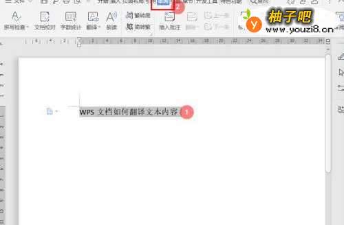 2选择文档中需要翻译的文本内容,点击菜单栏的【审阅】;