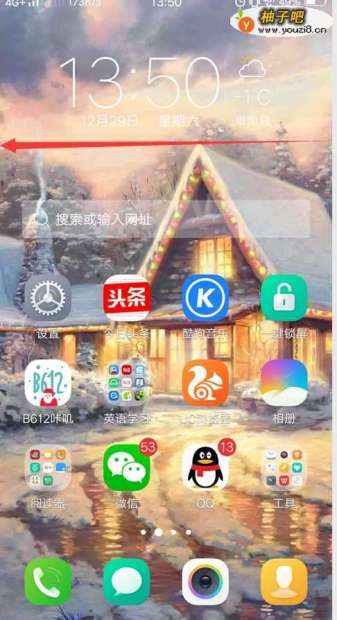 3然后,用手指轻触屏幕,将手机屏向右滑。
