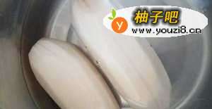 3切藕:第一刀不到底,第二刀切到底,这样形成一个藕夹。依次重复操作。