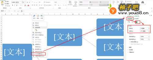 2右击SMARTART图形空白处——大小和属性——在右侧设置形状格式中选择:形状选项——大小属性——设置高18厘米、宽37.5厘米。